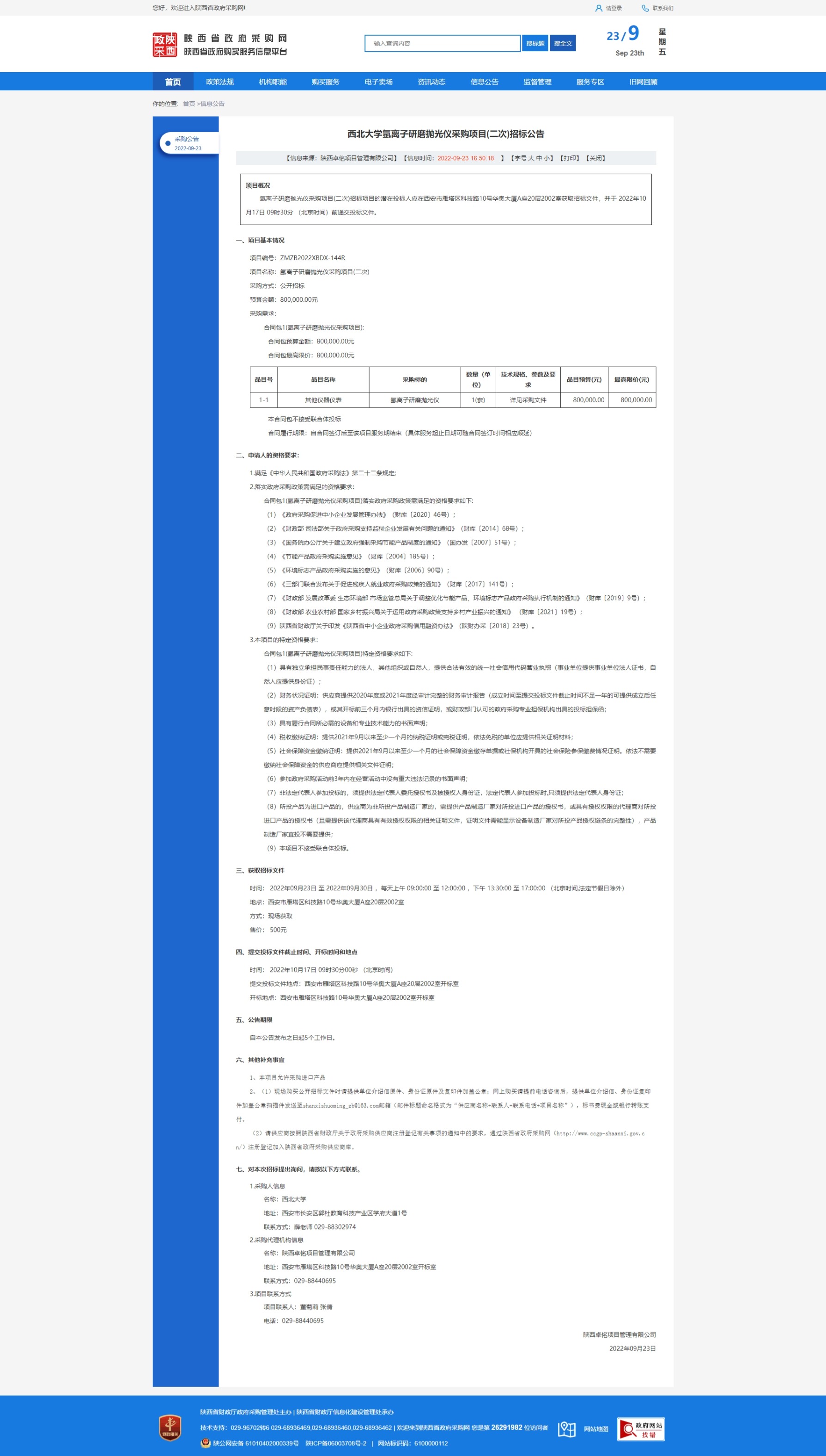 乐投平台氩离子研磨抛光仪采购项目(二次)招标公告 作者: 编辑:采购与招标办公室 时间:2022-09-23 原公告链接:http://www.ccgp-shaanxi.gov.cn/freecms/site/shaanxi/ggxx/info/2022/8a69c4a282a3244b0183697e6c6b06e5.html?noticeType=001011¬iceId=46b556db-3b1d-11ed-9a8e-08c0eb20c666