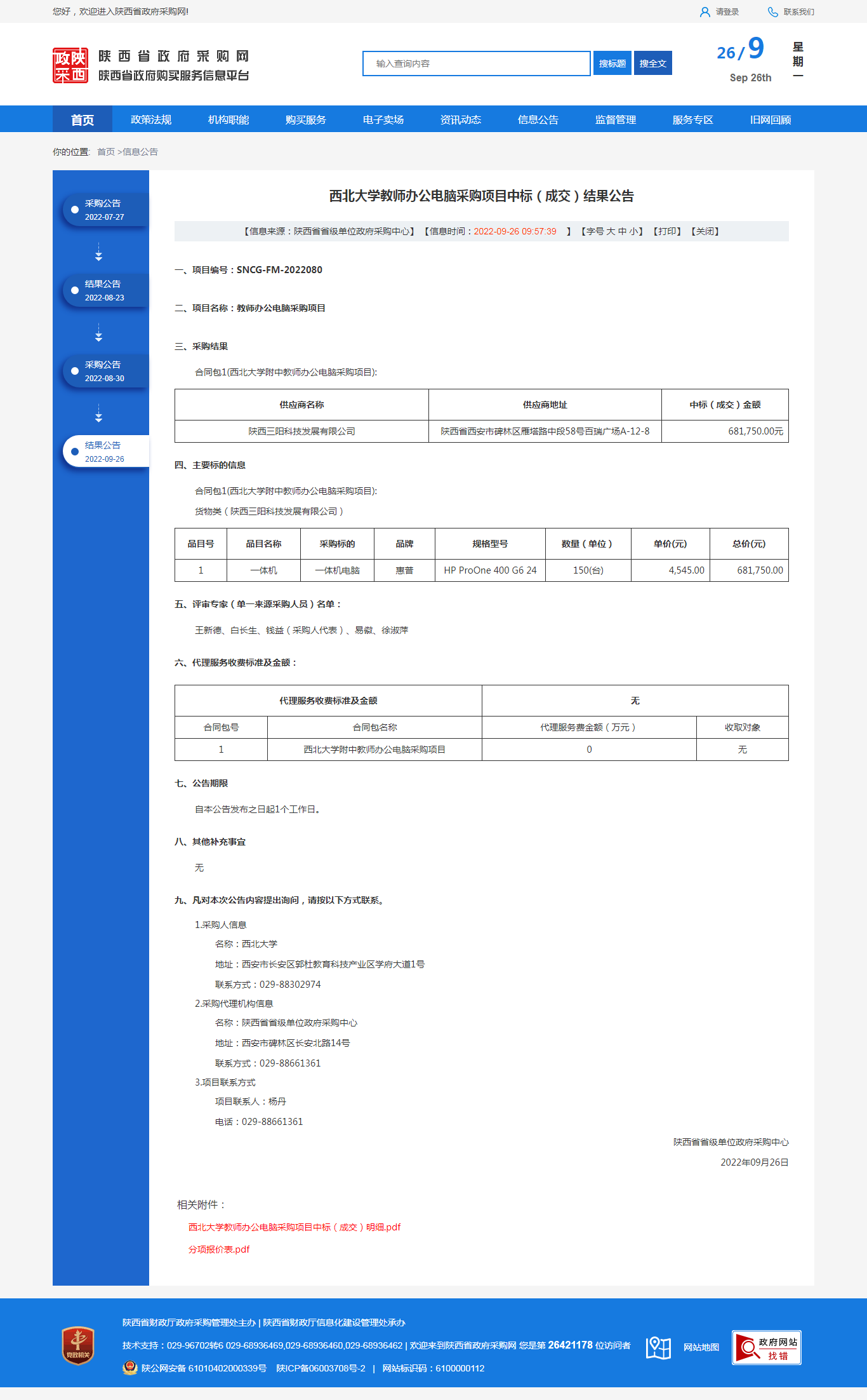 乐投平台教师办公电脑采购项目中标(成交)结果公告 作者: 编辑:采购与招标办公室 时间:2022-09-26 原公告链接:http://www.ccgp-shaanxi.gov.cn/freecms/site/shaanxi/ggxx/info/2022/8a69c59682a320a4018377493e6d3f72.html?noticeType=001021¬iceId=2261c8bd-3d3f-11ed-9a8e-08c0eb20c666
