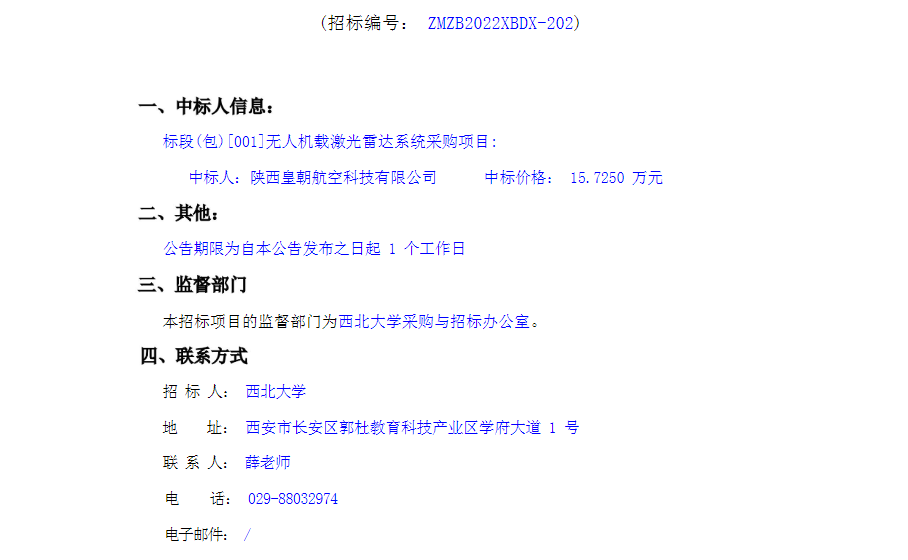 乐投平台无人机载激光雷达系统采购项目采购结果公告 作者: 编辑:采购与招标办公室 时间:2022-10-09 原公告链接:http://bulletin.sntba.com/resultBulletin/2022-10-09/483145.html