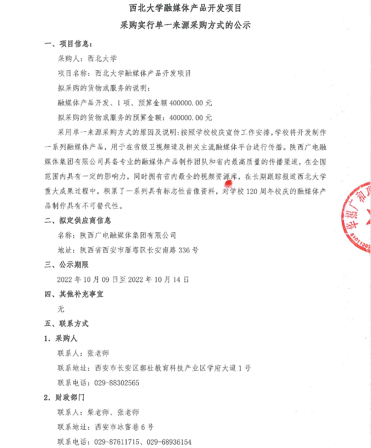 乐投平台融媒体产品开发项目采购实行单一来源采购方式的公示