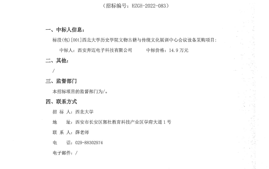 乐投平台历史学院文物古籍与传统文化展训中心会议设备采购项目中标结果公告 作者: 编辑:采购与招标办公室 时间:2022-10-21 原公告链接:http://bulletin.sntba.com/resultBulletin/2022-10-21/488897.html