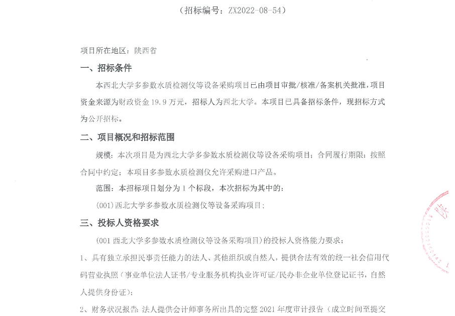 乐投平台多参数水质检测仪等设备采购项目公开招标公告 作者: 编辑:采购与招标办公室 时间:2022-11-03 原公告链接:http://bulletin.sntba.com/biddingBulletin/2022-11-03/494214.html