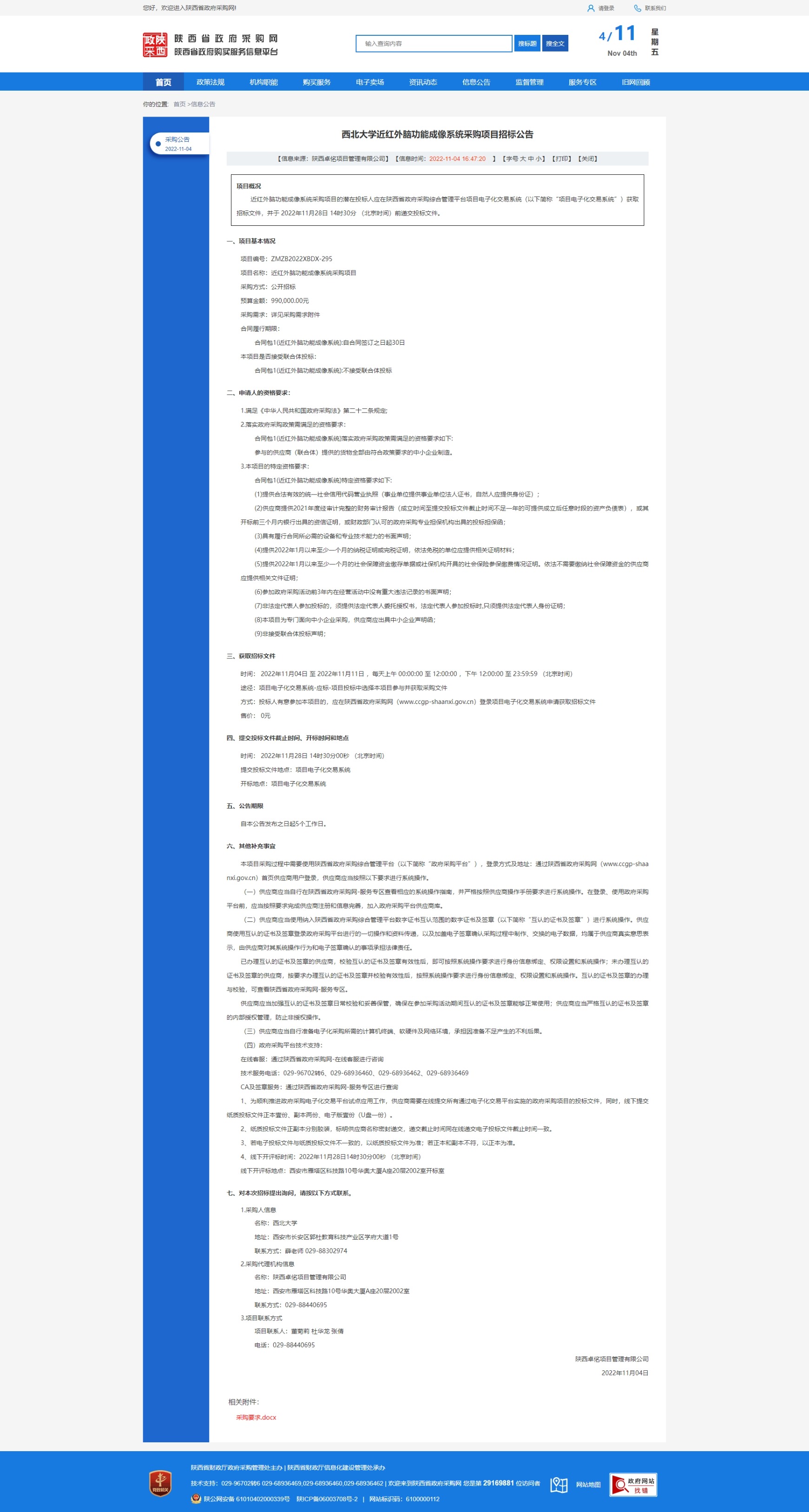 乐投平台近红外脑功能成像系统采购项目招标公告 作者: 编辑:采购与招标办公室 时间:2022-11-04 原公告链接:http://www.ccgp-shaanxi.gov.cn/freecms/site/shaanxi/ggxx/info/2022/8a69c4c88405ac2f018441b2ef453d78.html?noticeType=001011¬iceId=e9b69a03-5c1d-11ed-9a8e-08c0eb20c666