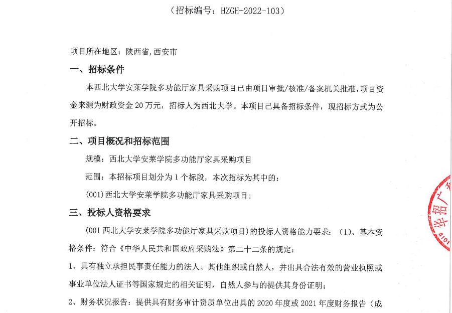 乐投平台安莱学院多功能厅家具采购项目招标公告 作者: 编辑:采购与招标办公室 时间:2022-11-16 原公告链接:http://bulletin.sntba.com/biddingBulletin/2022-11-16/499529.html
