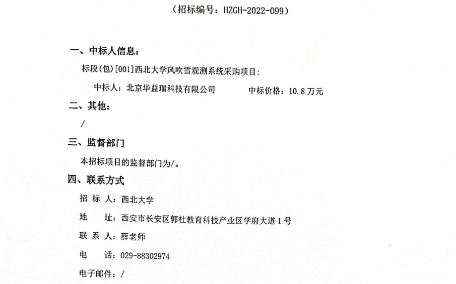 乐投平台风吹雪观测系统采购项目成交结果公示 作者: 编辑:采购与招标办公室 时间:2022-11-18 原公告链接:http://bulletin.sntba.com/resultBulletin/2022-11-18/500439.html