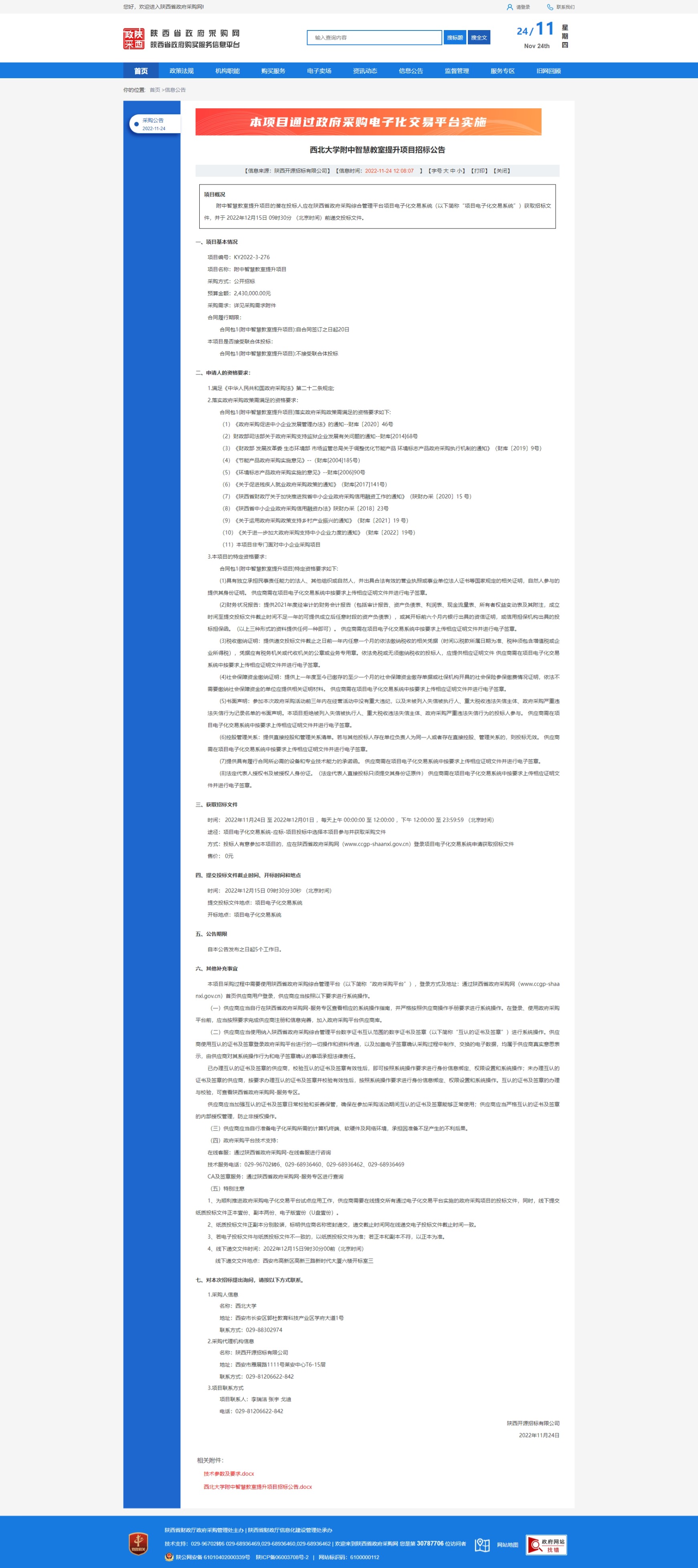 乐投平台附中智慧教室提升项目招标公告 作者: 编辑:采购与招标办公室 时间:2022-11-24 原公告链接:http://www.ccgp-shaanxi.gov.cn/freecms/site/shaanxi/ggxx/info/2022/8a69c4c88405ac2f0184a7b6f03b1520.html?noticeType=001011¬iceId=4274012b-6bae-11ed-9a8e-08c0eb20c666