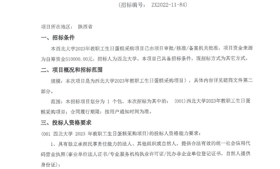 乐投平台2023年教职工生日蛋糕采购项目竞争性磋商公告 作者: 编辑:采购与招标办公室 时间:2022-11-30 原公告链接:http://bulletin.sntba.com/biddingBulletin/2022-11-30/505076.html