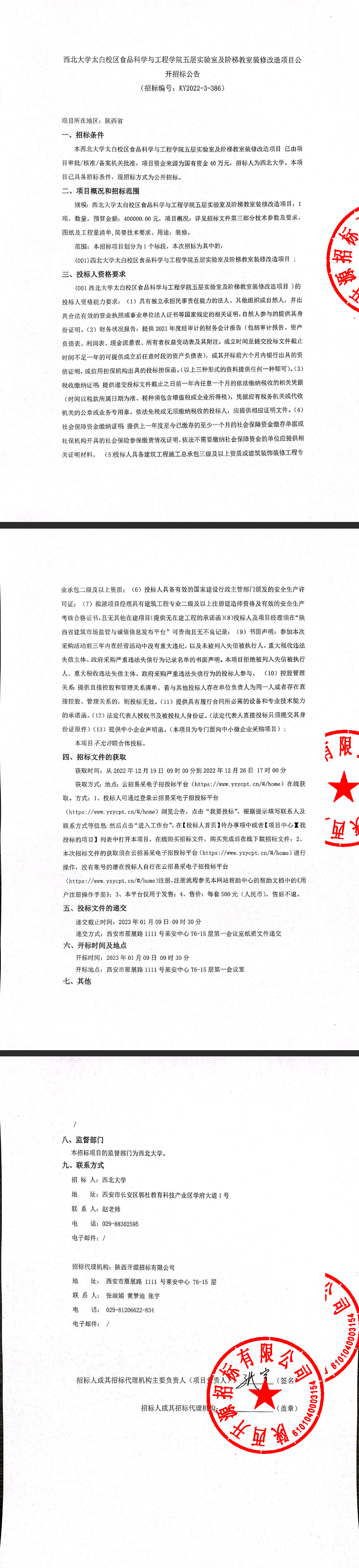 乐投平台太白校区食品科学与工程学院五层实验室及阶梯教室装修改造项目公开招标公告