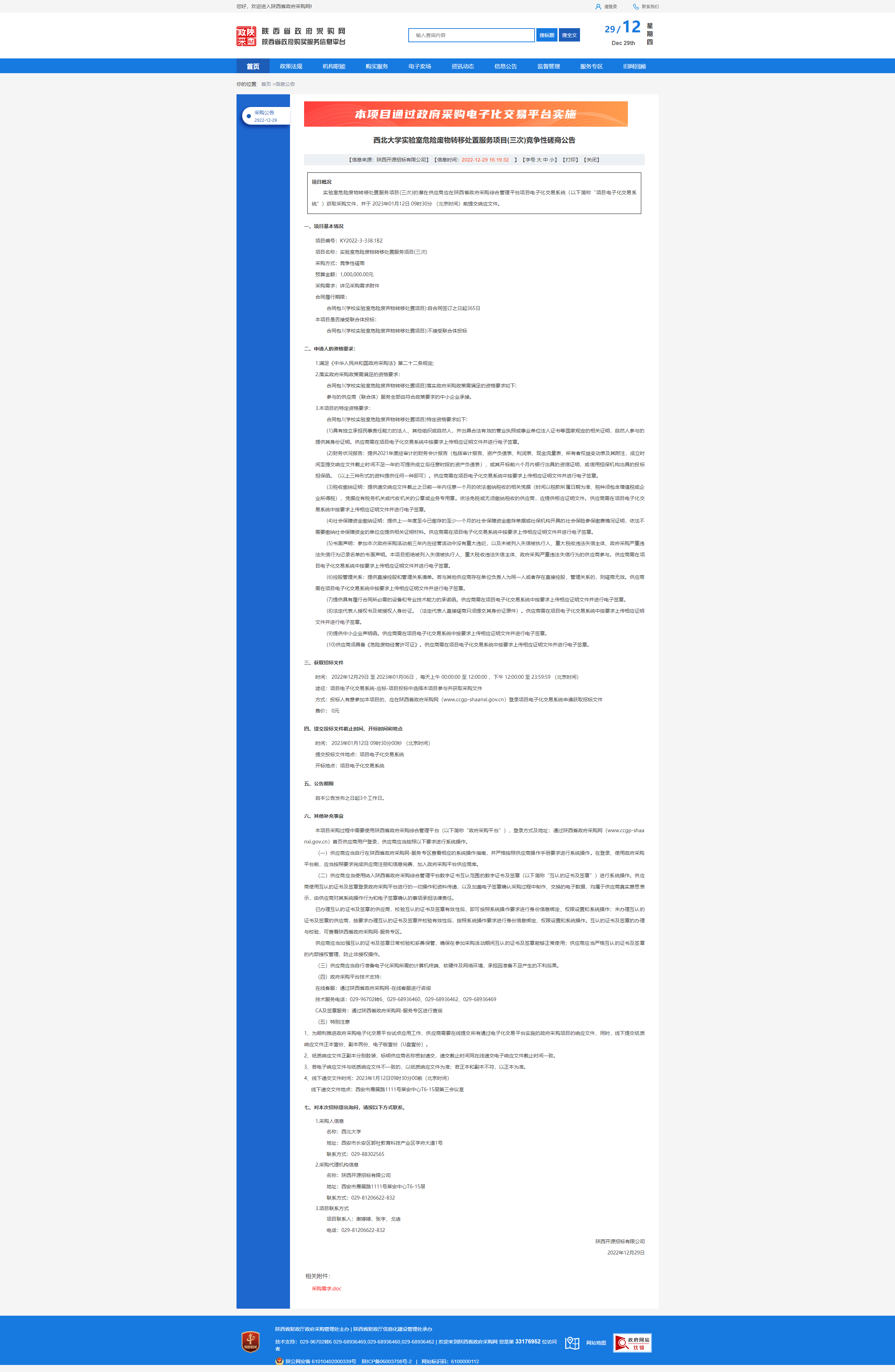 乐投平台实验室危险废物转移处置服务项目(三次)竞争性磋商公告