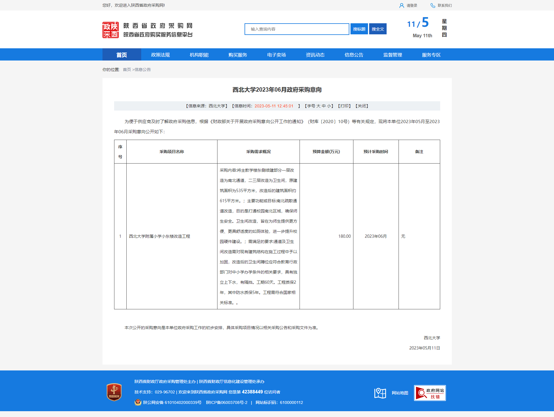 乐投平台2023年06月政府采购意向