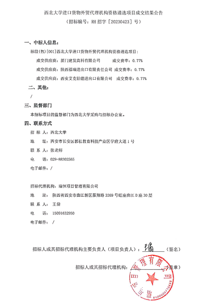 乐投平台进口货物外贸代理机构资格遴选项目成交结果公告