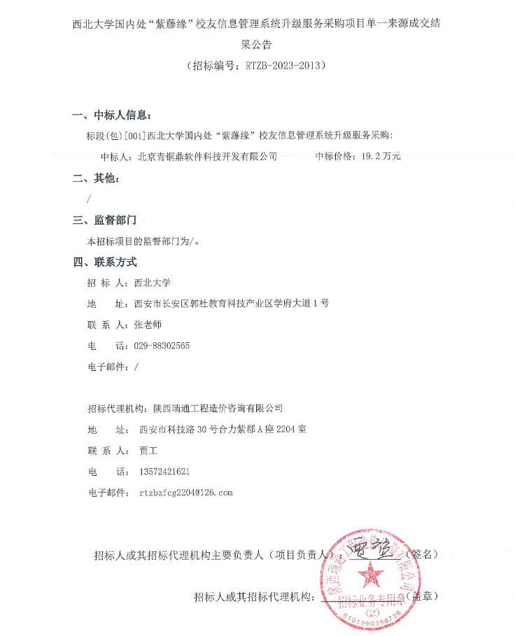乐投平台国内处“紫藤缘”校友信息管理系统升级服务采购项目单一来源成交结果公告