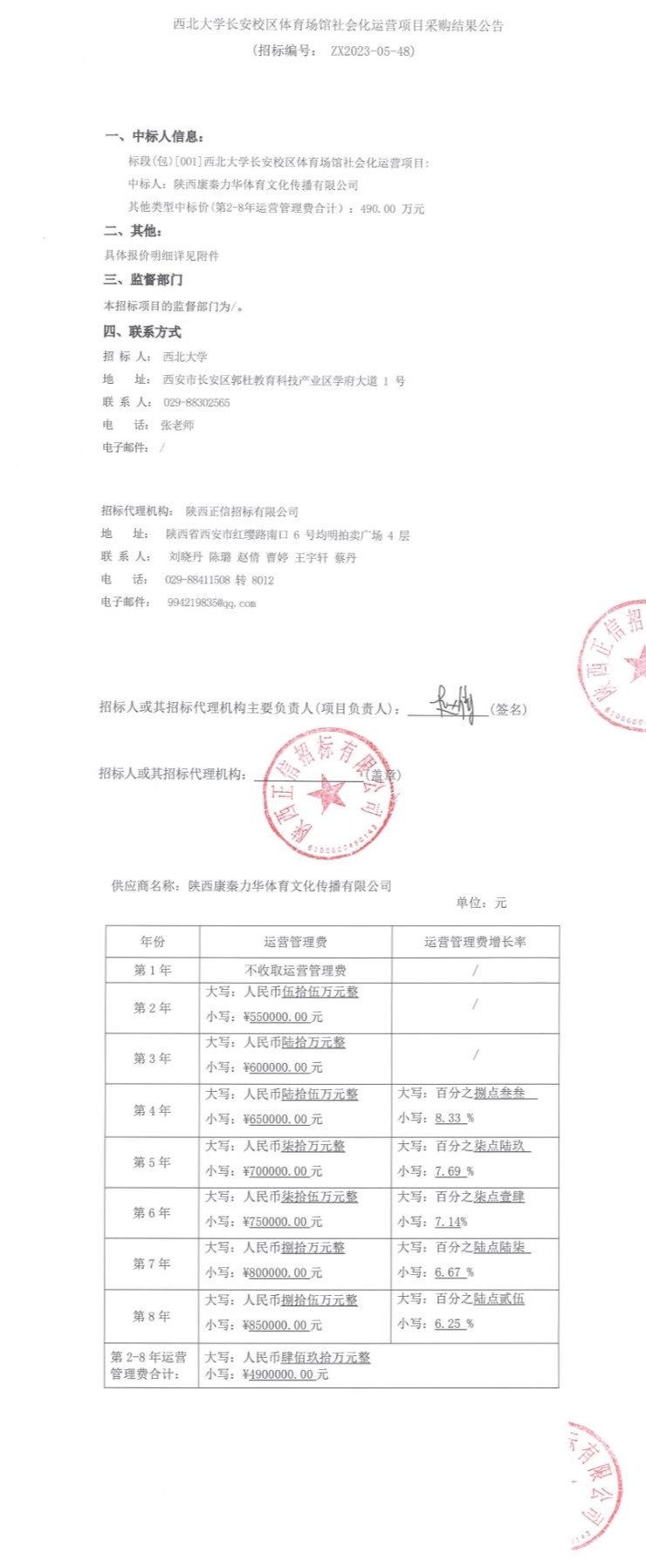 乐投平台长安校区体育场馆社会化运营项目采购结果公告