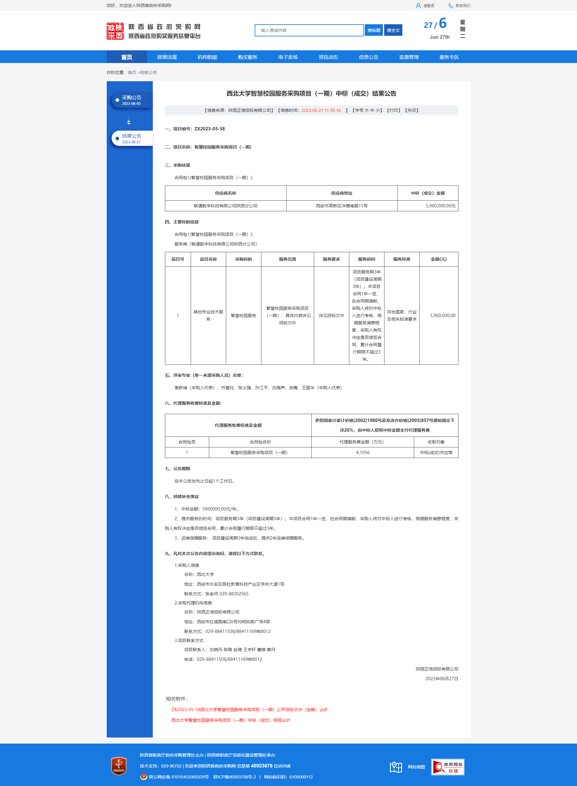 乐投平台智慧校园服务采购项目(一期)中标(成交)结果公告