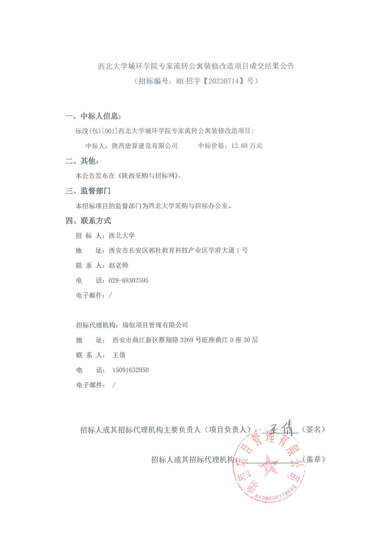 乐投平台城环学院专家流转公寓装修改造项目成交结果公告