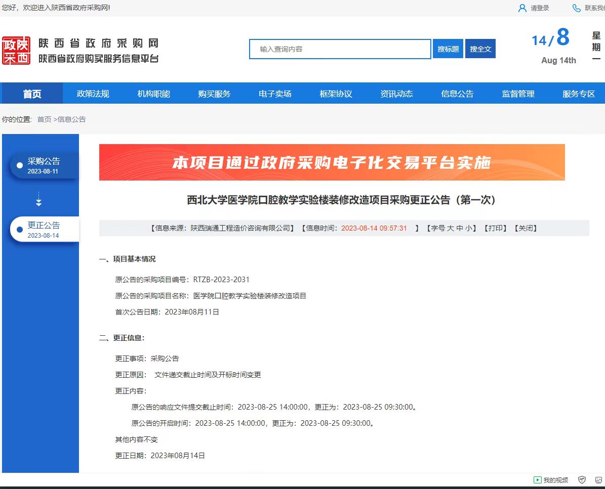 乐投平台医学院口腔教学实验楼装修改造项目采购更正公告(第一次)
