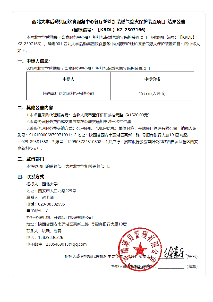乐投平台后勤集团饮食服务中心餐厅炉灶加装燃气熄火保护装置项目-结果公告