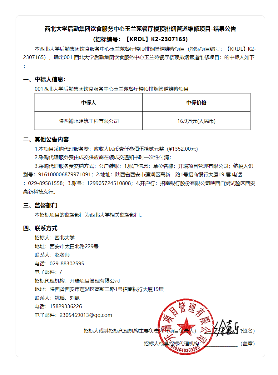 乐投平台后勤集团饮食服务中心玉兰苑餐厅楼顶排烟管道维修项目-结果公告