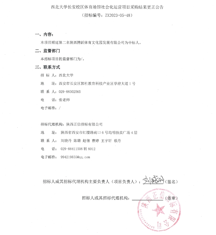 乐投平台长安校区体育场馆社会化运营项目采购结果更正公告