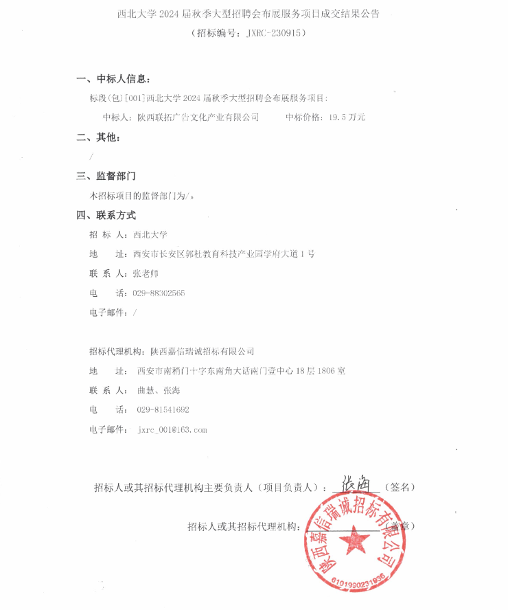 乐投平台2024届秋季大型招聘会布展服务项目成交结果公告