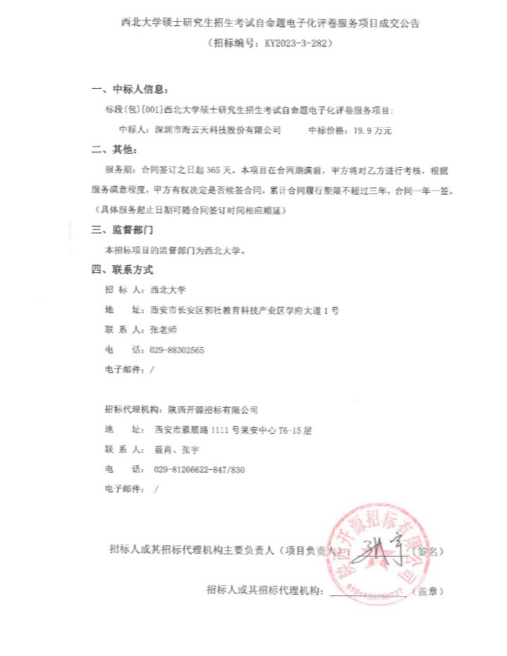 乐投平台硕士研究生招生考试自命题电子化评卷服务项目成交公告
