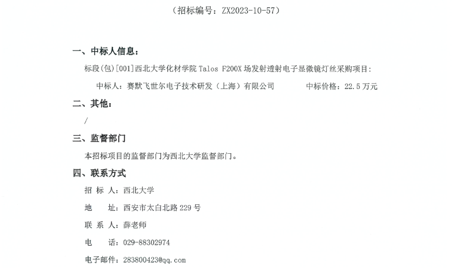 乐投平台化材学院Talos F200X场发射透射电子显微镜灯丝采购项目成交结果公示 作者: 编辑: 时间:2023-12-05 原公告链接:http://bulletin.sntba.com/resultBulletin/2023-12-05/881283.html