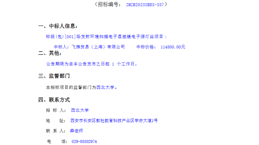 乐投平台场发射环境扫描电子显微镜电子源灯丝项目采购结果公告 作者: 编辑:采购与招标办公室 时间:2023-12-14 原公告链接:http://www.sntba.com/website/gg_show.aspx?id=263188