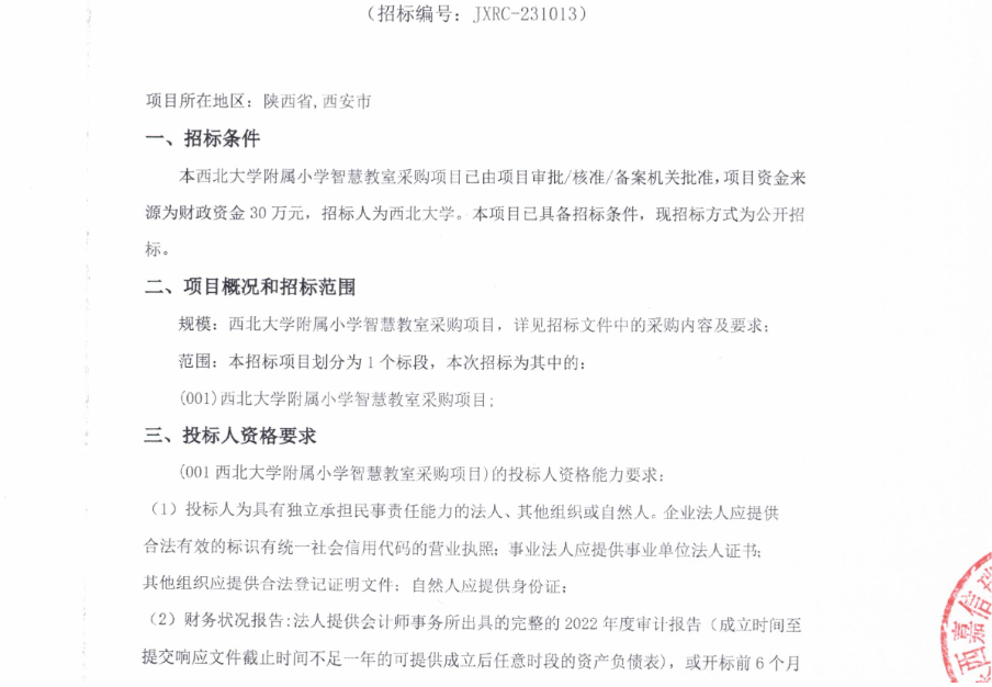 乐投平台附属小学智慧教室采购项目公开招标公告 作者: 编辑:采购与招标办公室 时间:2023-12-15 原公告链接:http://bulletin.sntba.com/biddingBulletin/2023-12-15/913862.html