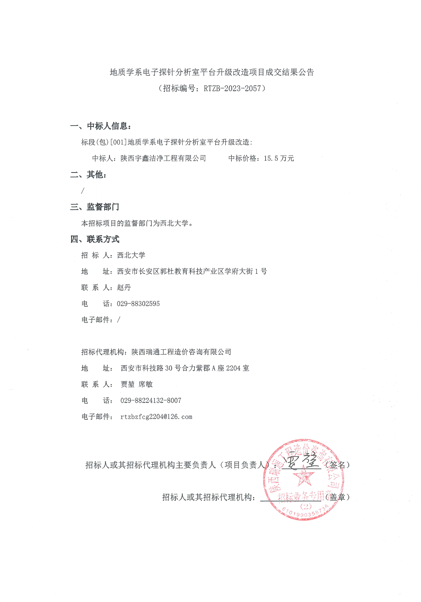 乐投平台地质学系电子探针分析室平台升级改造项目成交结果公告