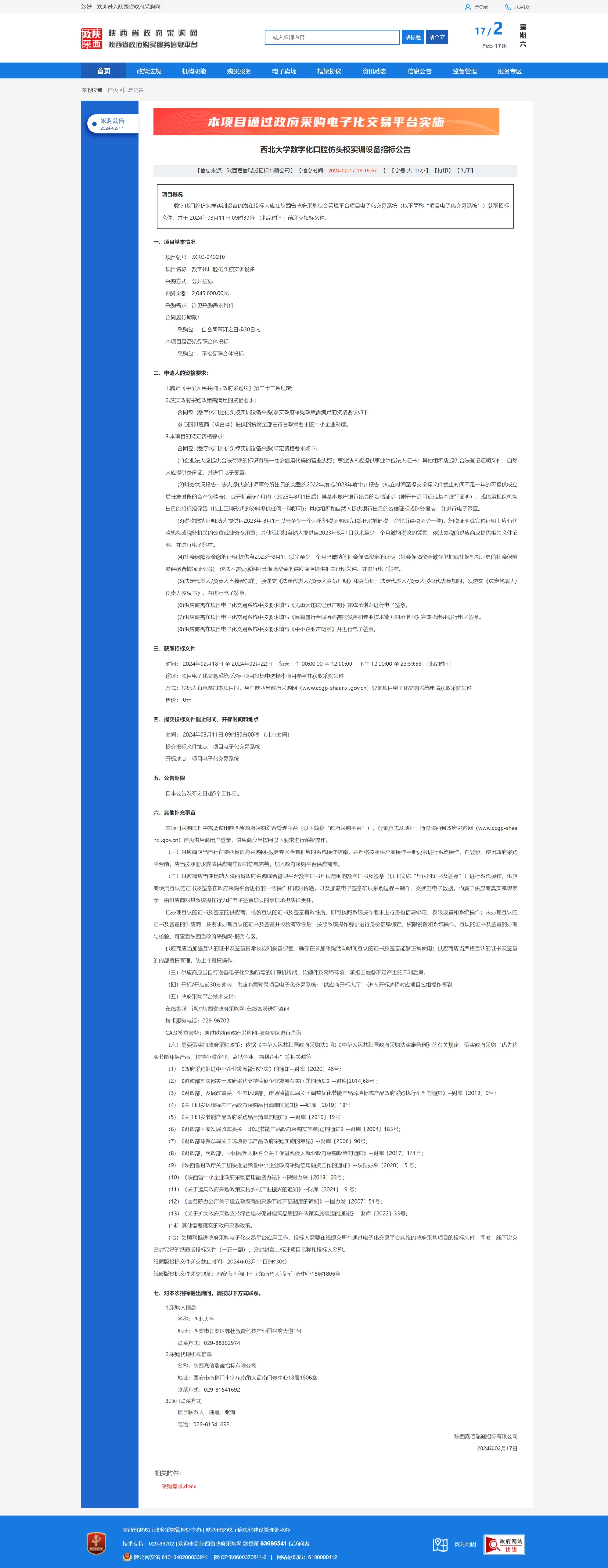 乐投平台数字化口腔仿头模实训设备招标公告 作者: 编辑:采购与招标办公室 时间:2024-02-17 原公告链接:https://www.ccgp-shaanxi.gov.cn/freecms/site/shaanxi/ggxx/info/2024/8a69c2e88d644a30018db25eab9c40be.html?noticeType=001011¬iceId=d8d8c715-cd6d-11ee-b8b6-08c0eb20c666