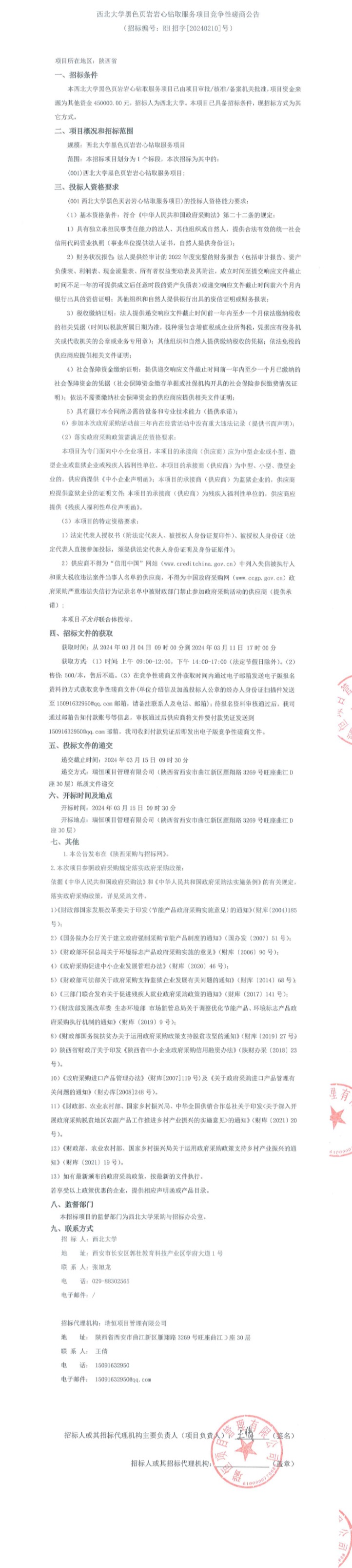 乐投平台黑色页岩岩心钻取服务项目竞争性磋商公告