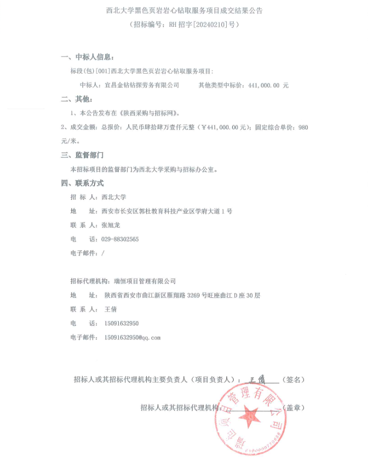 乐投平台黑色页岩岩心钻取服务项目成交结果公告