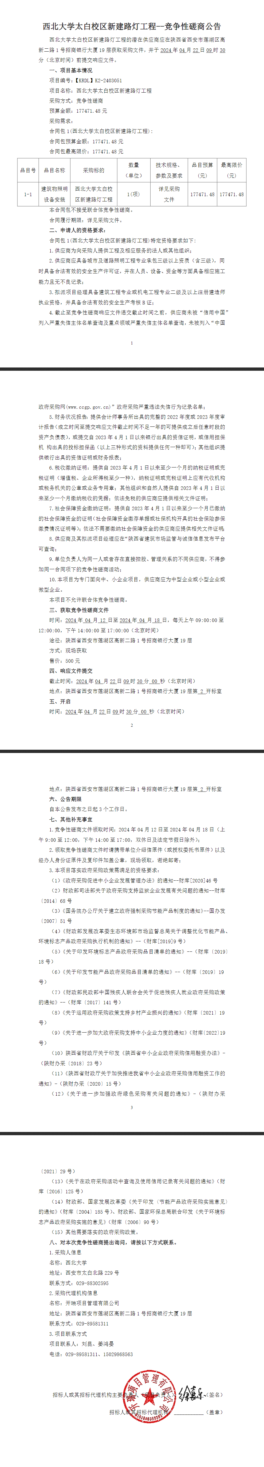 乐投平台太白校区新建路灯工程竞争性磋商公告