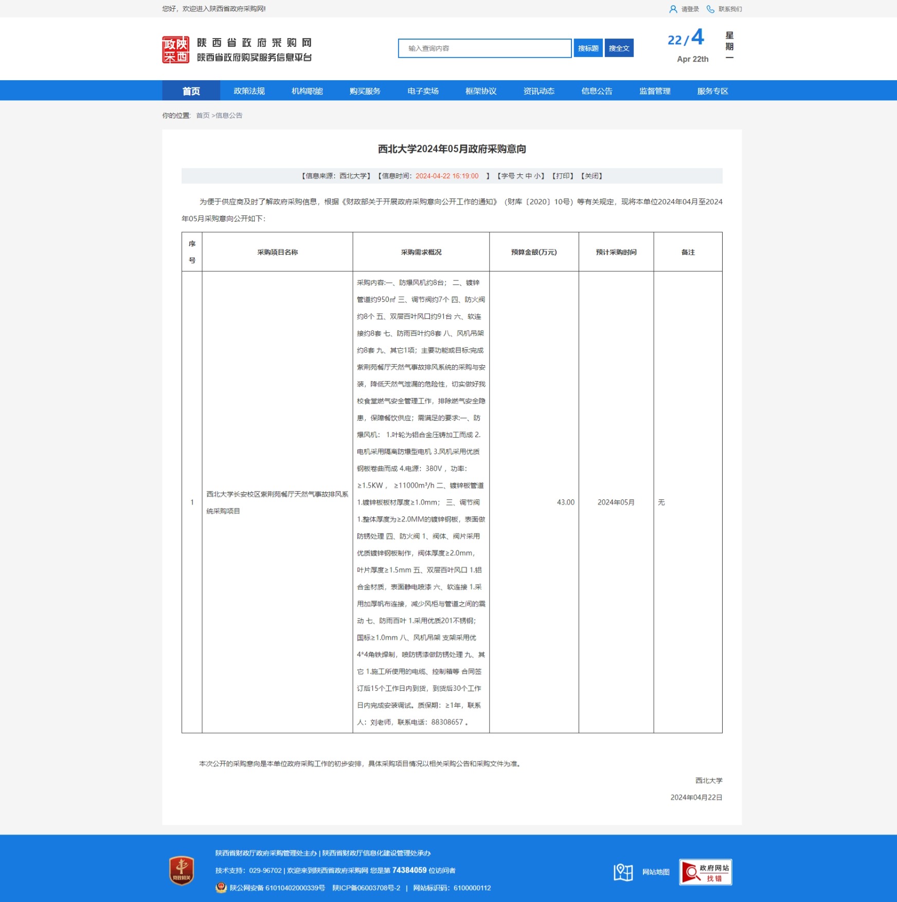 乐投平台2024年05月政府采购意向 作者: 编辑:采购与招标办公室 时间:2024-04-22 原公告链接:https://www.ccgp-shaanxi.gov.cn/freecms/site/shaanxi/ggxx/info/2024/8a69c2f18edfb8e9018f034a758507c8.html?noticeType=59¬iceId=6c449ff0-0083-11ef-b8b6-08c0eb20c666