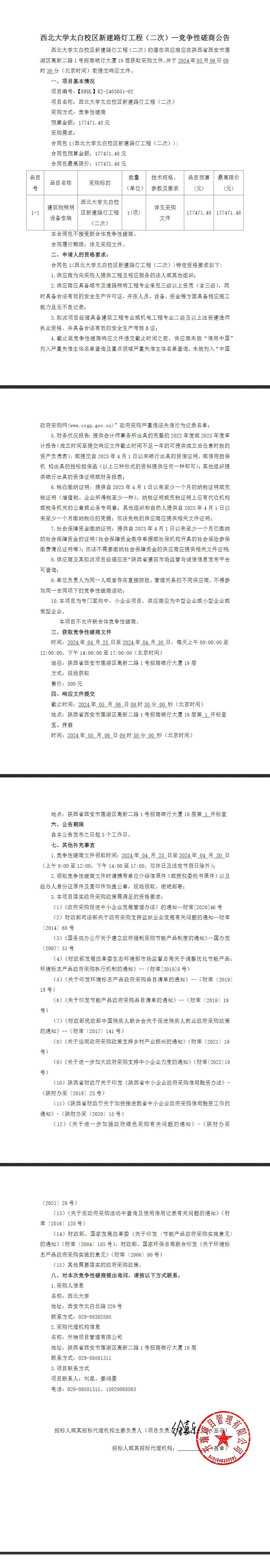乐投平台太白校区新建路灯工程(二次)竞争性磋商公告