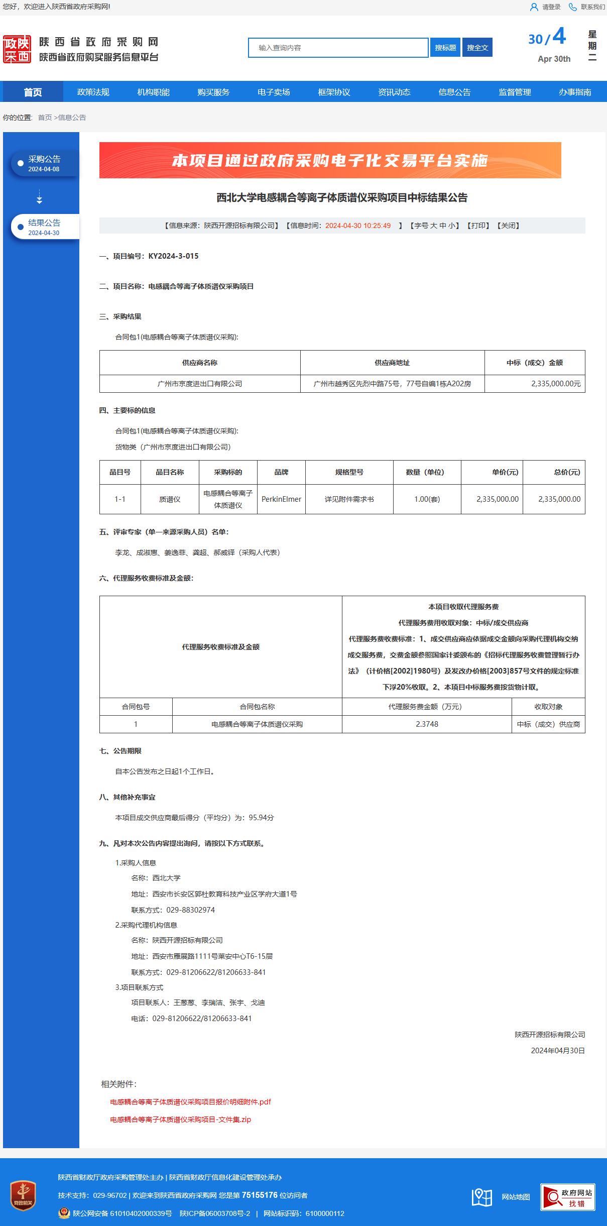 乐投平台电感耦合等离子体质谱仪采购项目中标结果公告