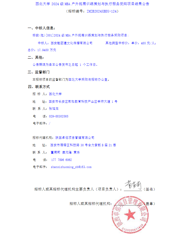 乐投平台2024级MBA户外拓展训练策划与执行服务采购项目结果公告