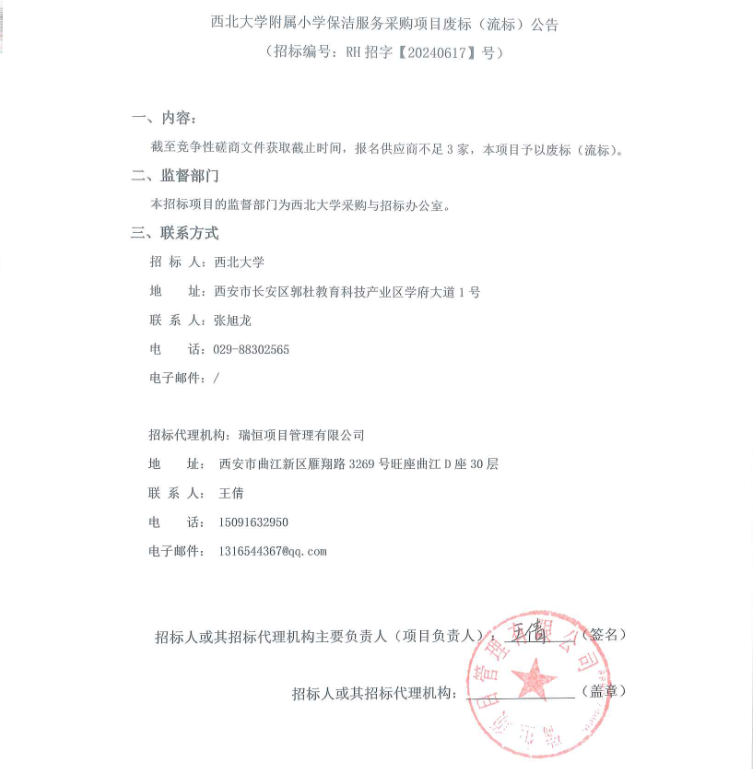 乐投平台附属小学保洁服务采购项目废标(流标)公告