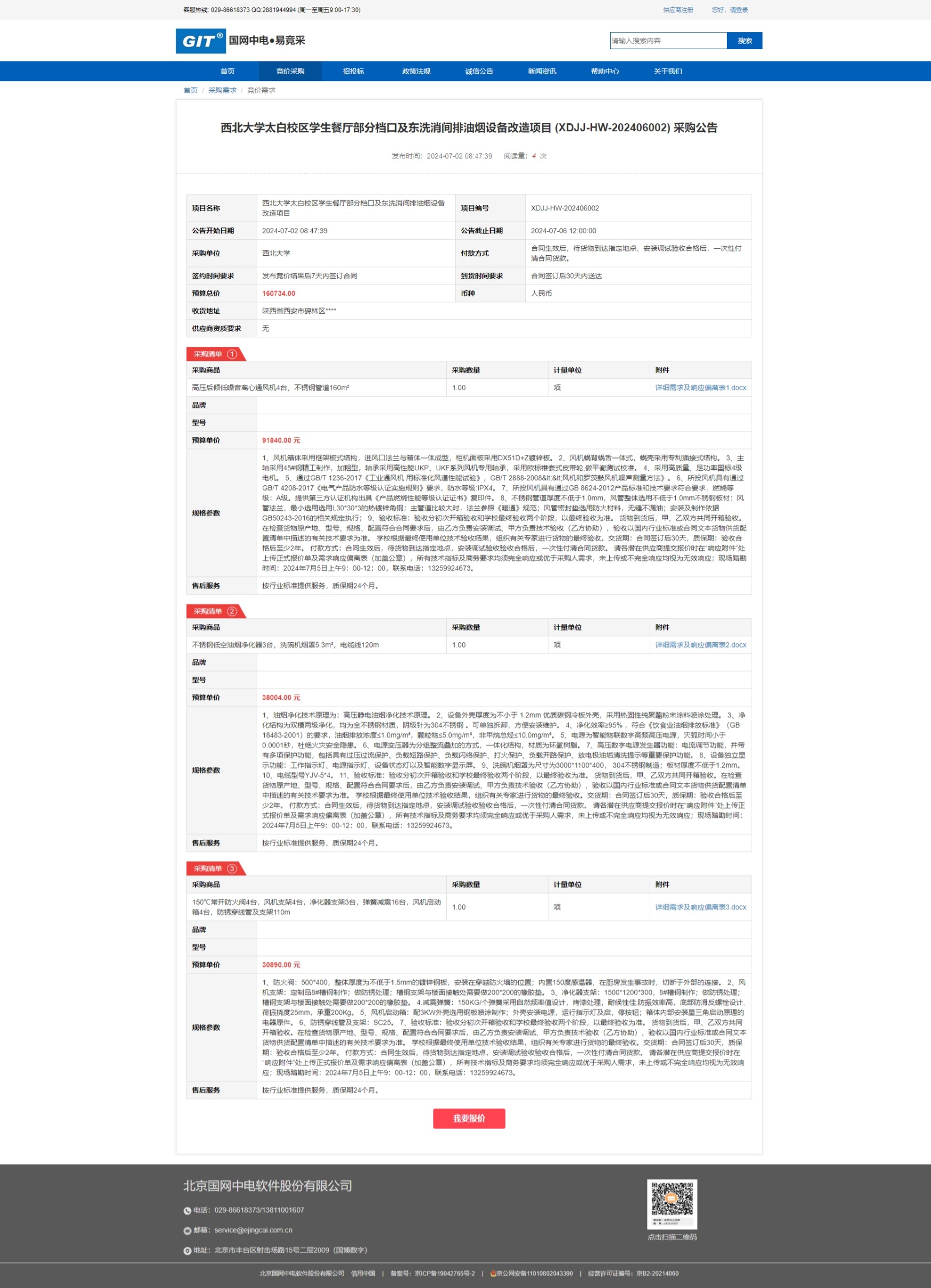 乐投平台太白校区学生餐厅部分档口及东洗消间排油烟设备改造项目 (XDJJ-HW-202406002) 竞价采购公告 作者: 编辑:采购与招标办公室 时间:2024-07-02 原公告链接:https://www.ejingcai.com.cn/site/bidding/detail/11377