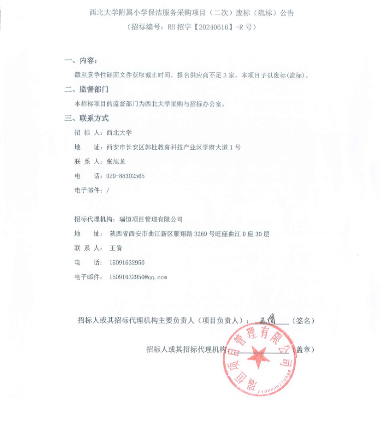 乐投平台附属小学保洁服务采购项目(二次)废标(流标)公告