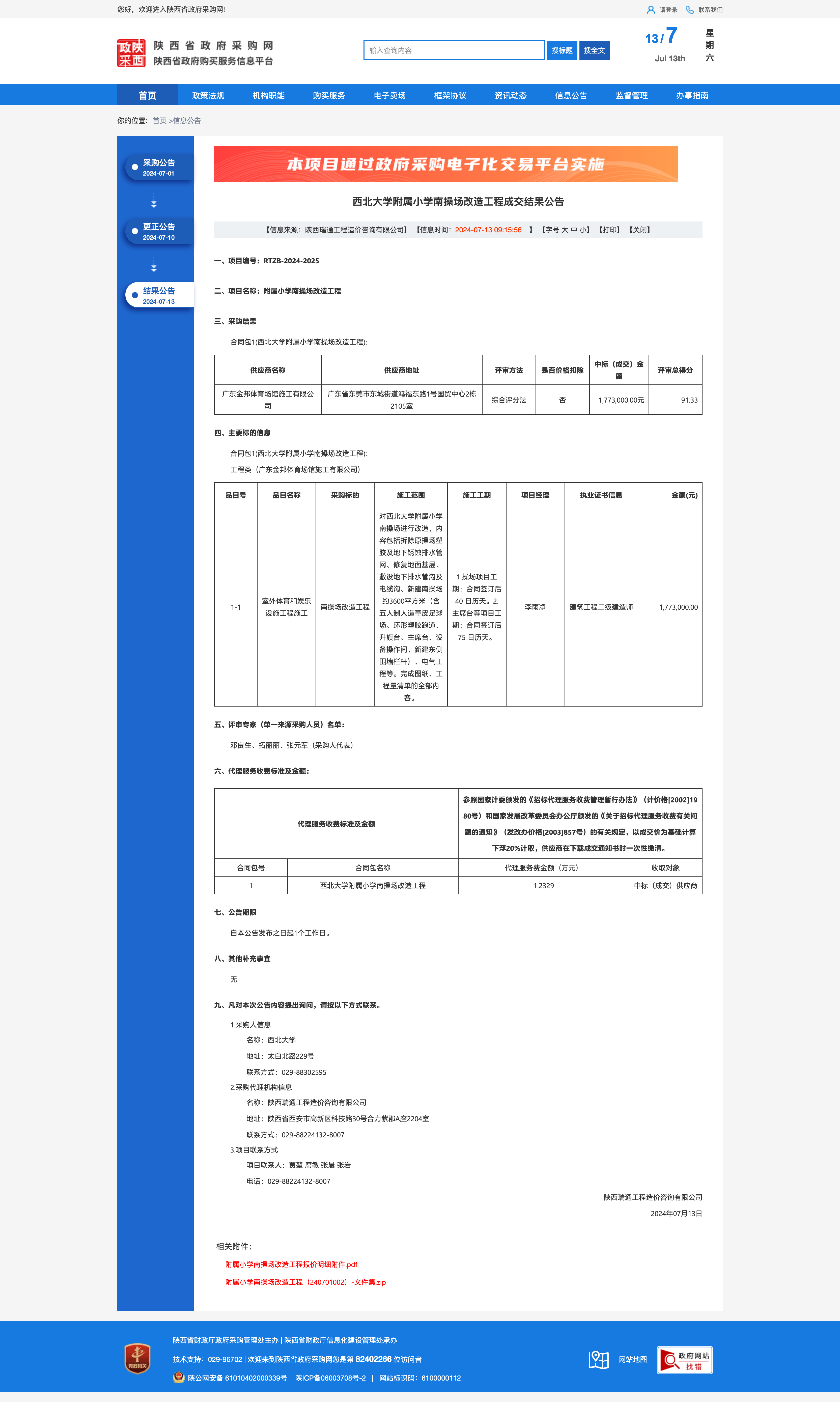 乐投平台附属小学南操场改造工程成交结果公告