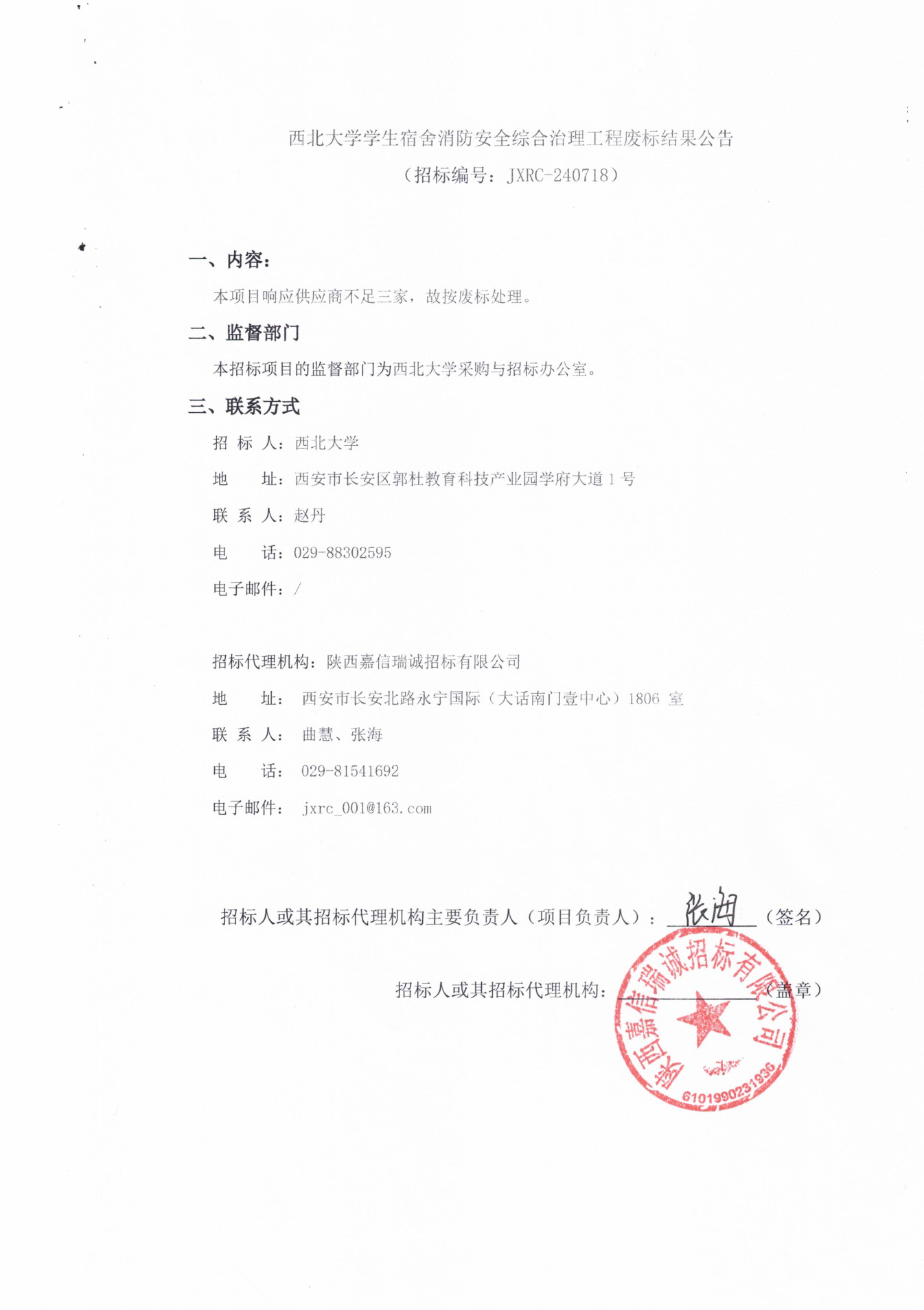 乐投平台学生宿舍消防安全综合治理工程废标结果公告
