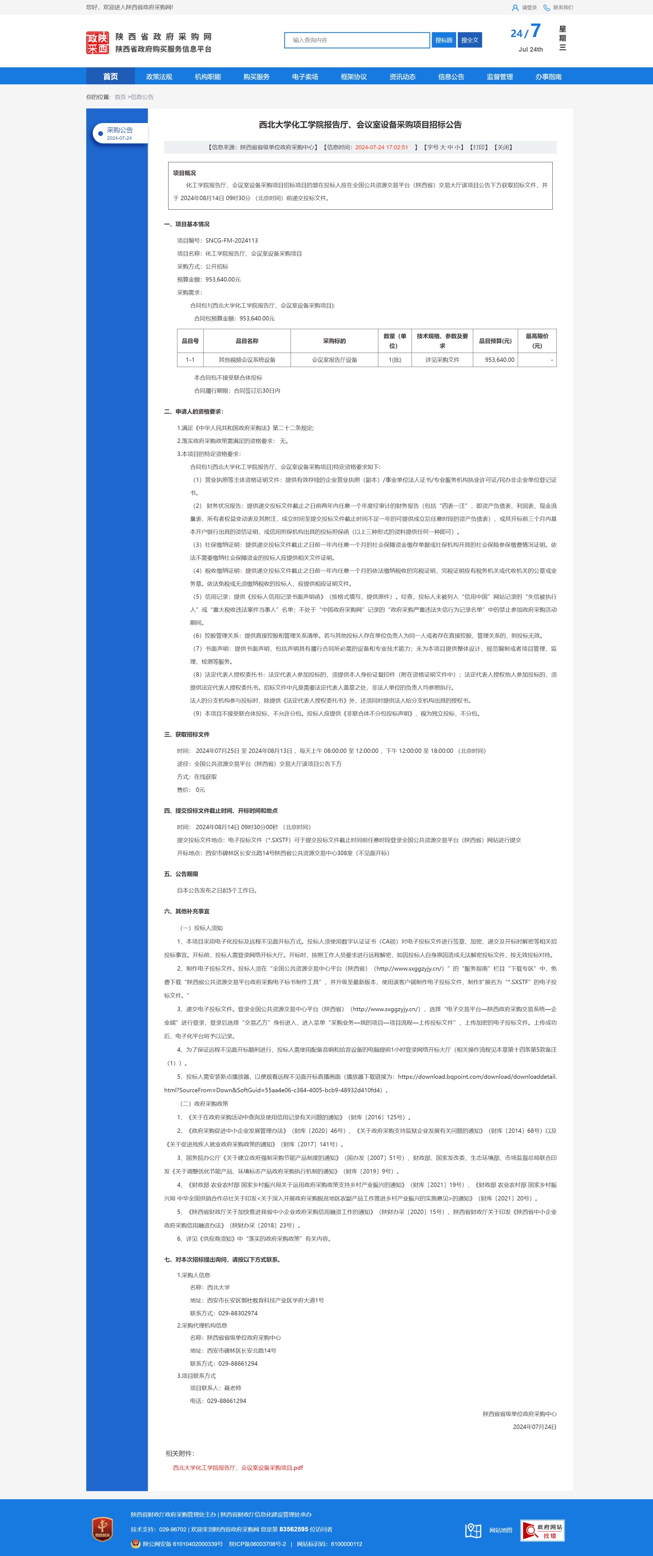 乐投平台化工学院报告厅、会议室设备采购项目招标公告 作者: 编辑:采购与招标办公室 时间:2024-07-24 原公告链接:https://www.ccgp-shaanxi.gov.cn/freecms/site/shaanxi/ggxx/info/2024/8a69c43990e021d80190e2424f98406d.html?noticeType=001011¬iceId=9ce13ca5-499d-11ef-b8b6-08c0eb20c666