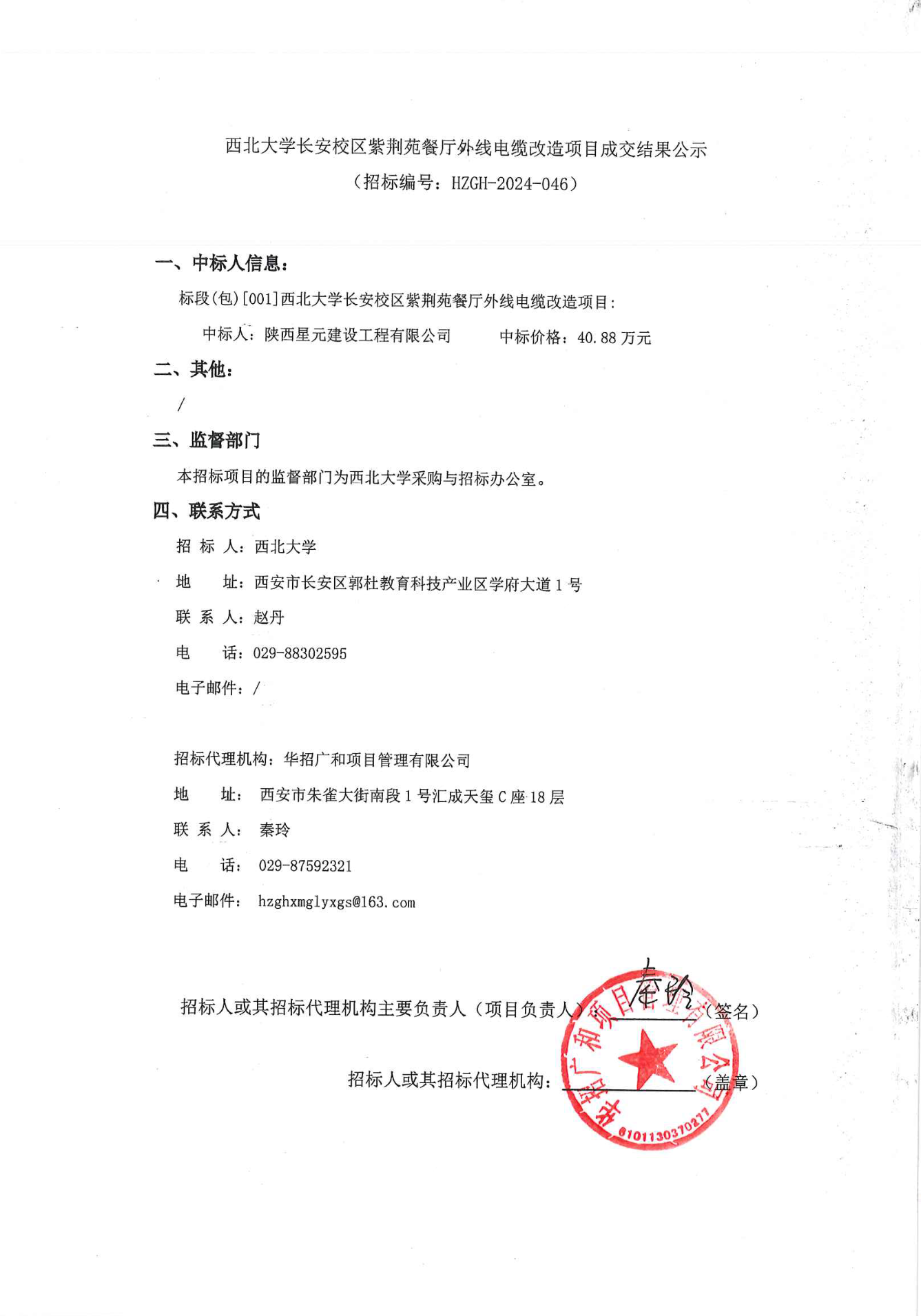 乐投平台长安校区紫荆苑餐厅外线电缆改造项目成交结果公示