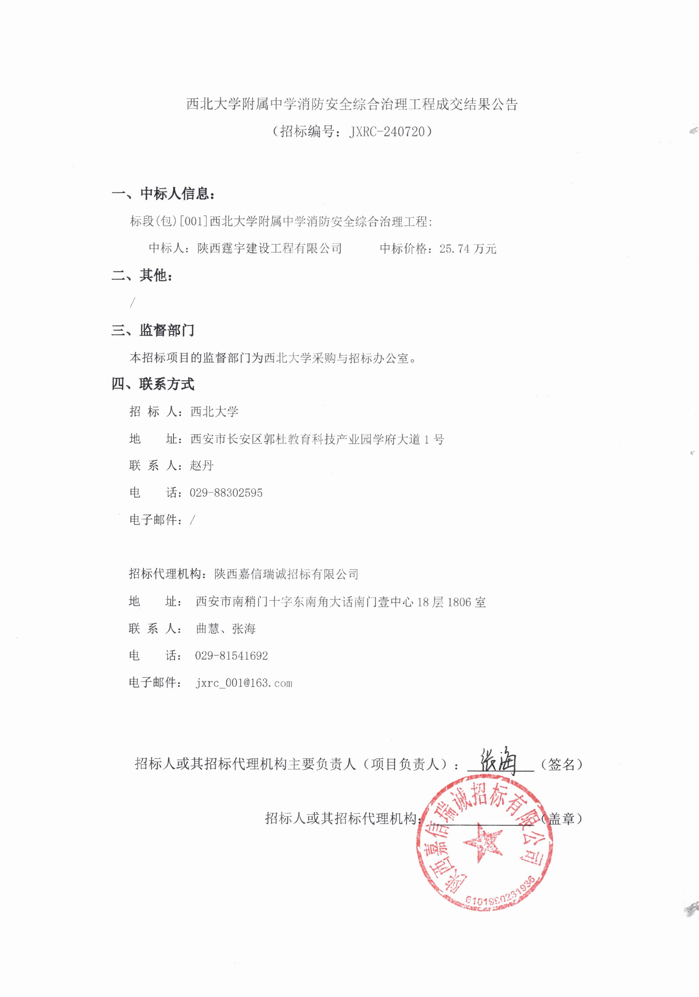 乐投平台附属中学消防安全综合治理工程成交结果公告
