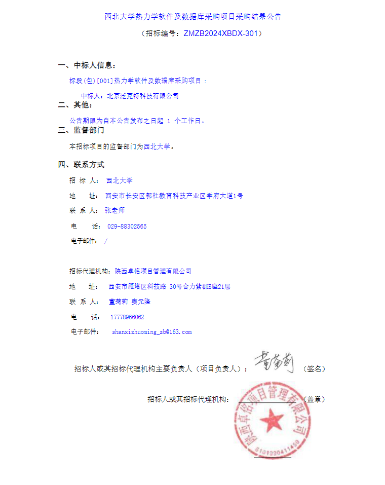 乐投平台热力学软件及数据库采购项目采购结果公告