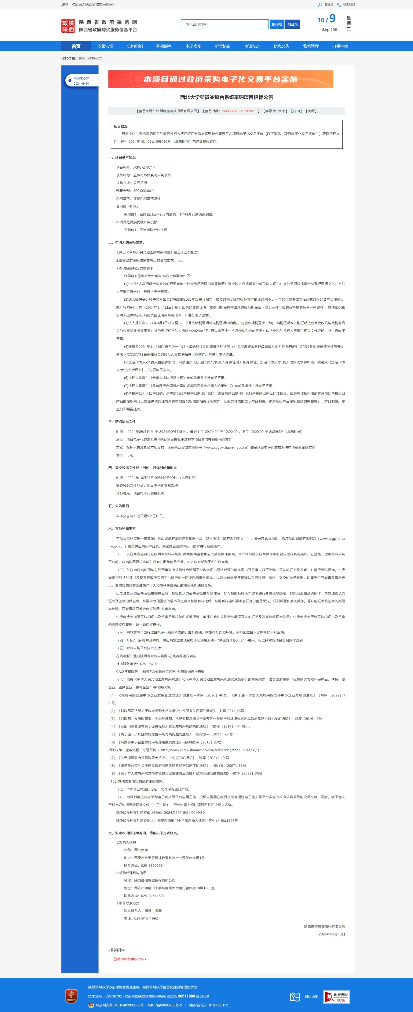 乐投平台显微冷热台系统采购项目招标公告 作者: 编辑:采购与招标办公室 时间:2024-09-10 原公告链接:https://www.ccgp-shaanxi.gov.cn/freecms/site/shaanxi/ggxx/info/2024/8a69c59190e5cfc20191daa3bed23540.html?noticeType=001011¬iceId=28d86de2-6f49-11ef-8063-08c0eb20c666