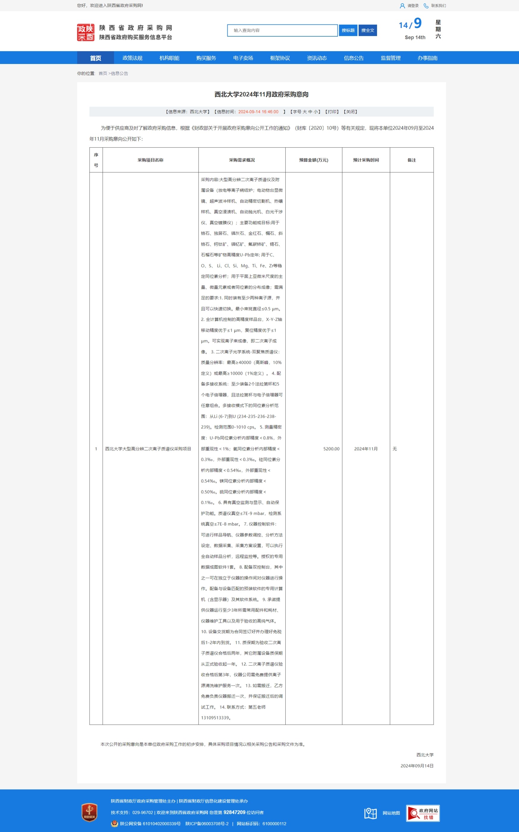 乐投平台2024年11月政府采购意向 作者: 编辑:采购与招标办公室 时间:2024-09-14 原公告链接:https://www.ccgp-shaanxi.gov.cn/freecms/site/shaanxi/ggxx/info/2024/8a69c24d91d6105a0191efadceb9269b.html?noticeType=59¬iceId=3954bd28-7277-11ef-8063-08c0eb20c666