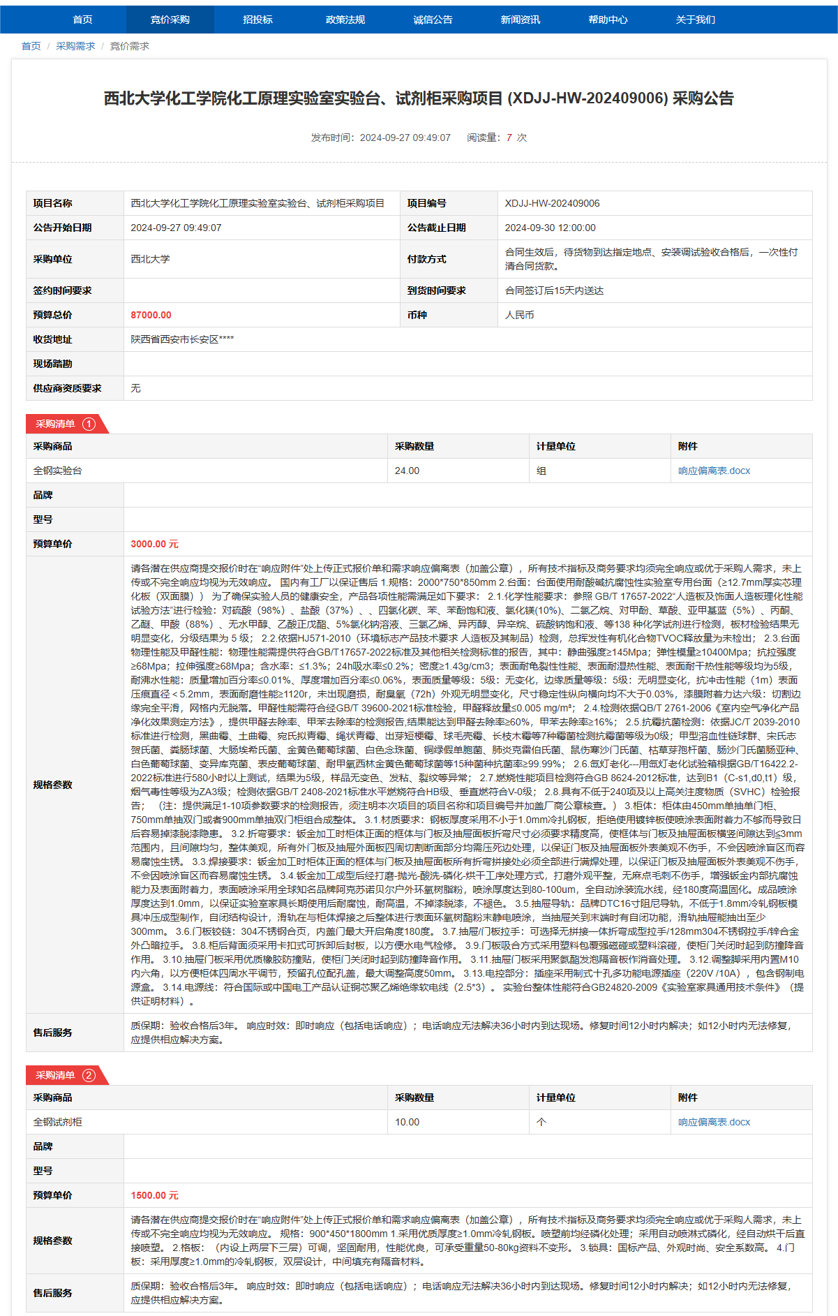 乐投平台化工学院化工原理实验室实验台、试剂柜采购项目(XDJJ-HW-202409006)竞价采购公告 作者: 编辑: 时间:2024-09-27 原公告链接:https://www.ejingcai.com.cn/site/bidding/detail/12926