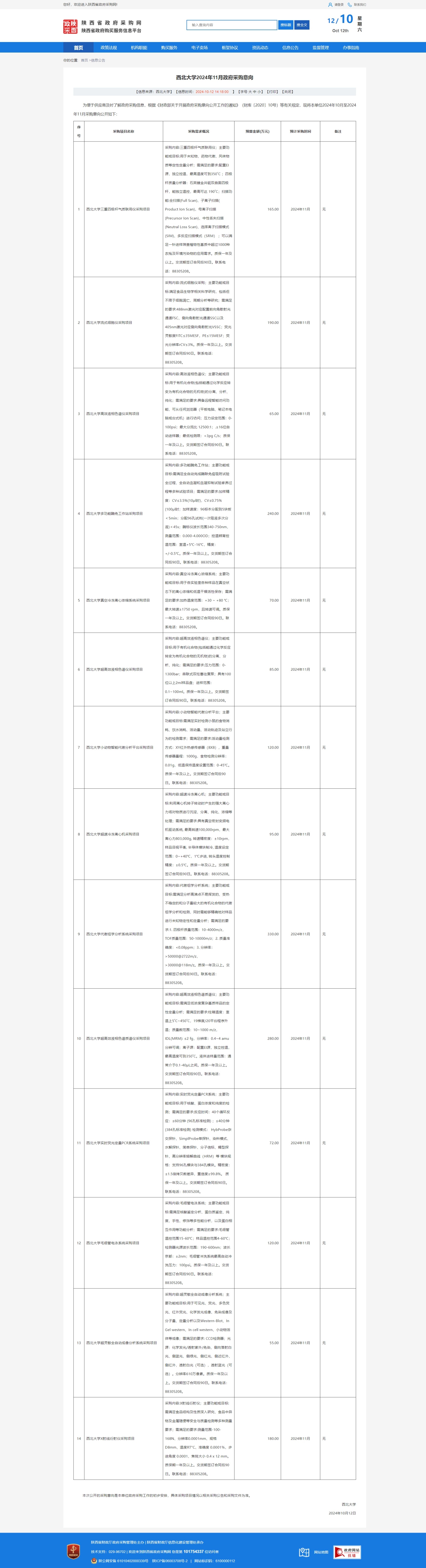 乐投平台2024年11月政府采购意向(食品科学与工程学院) 作者: 编辑: 时间:2024-10-12 原公告链接:https://www.ccgp-shaanxi.gov.cn/freecms/site/shaanxi/ggxx/info/2024/8a69c95c927dd5a501927e27dae504f0.html?noticeType=59¬iceId=3cbc7a1c-8863-11ef-8063-08c0eb20c666
